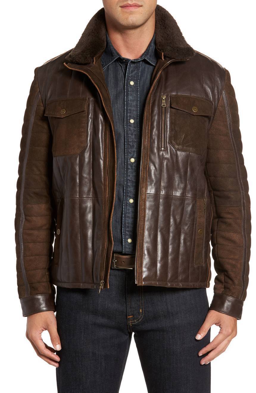 Stylish Fully Padded Trimmed Fur Collar Men Genuine Leather Jacket Biker jacket