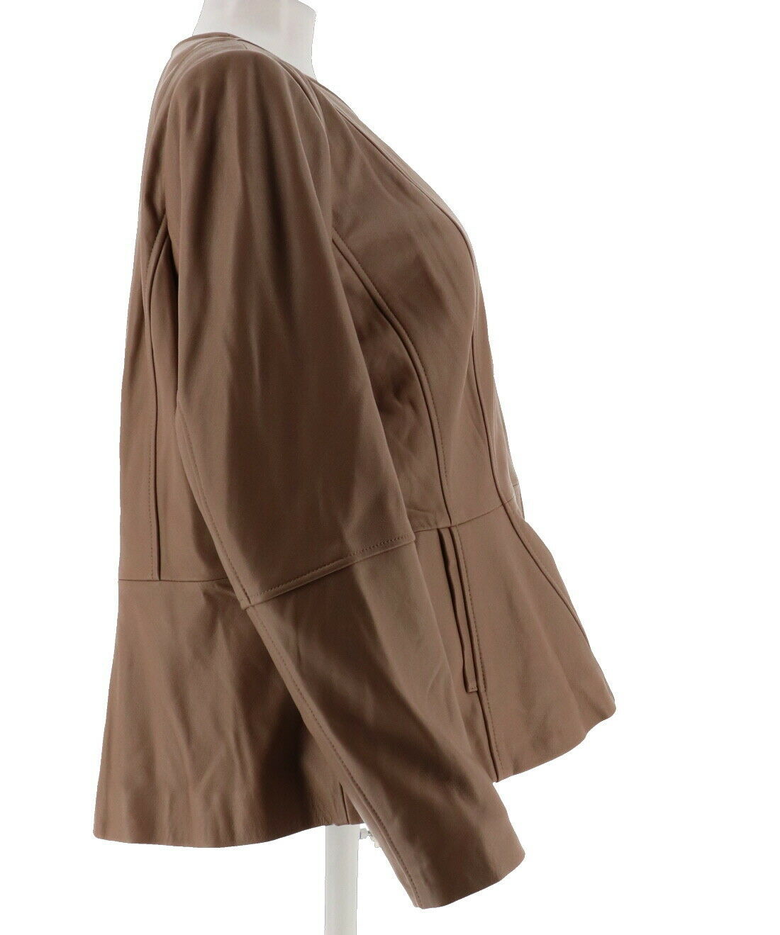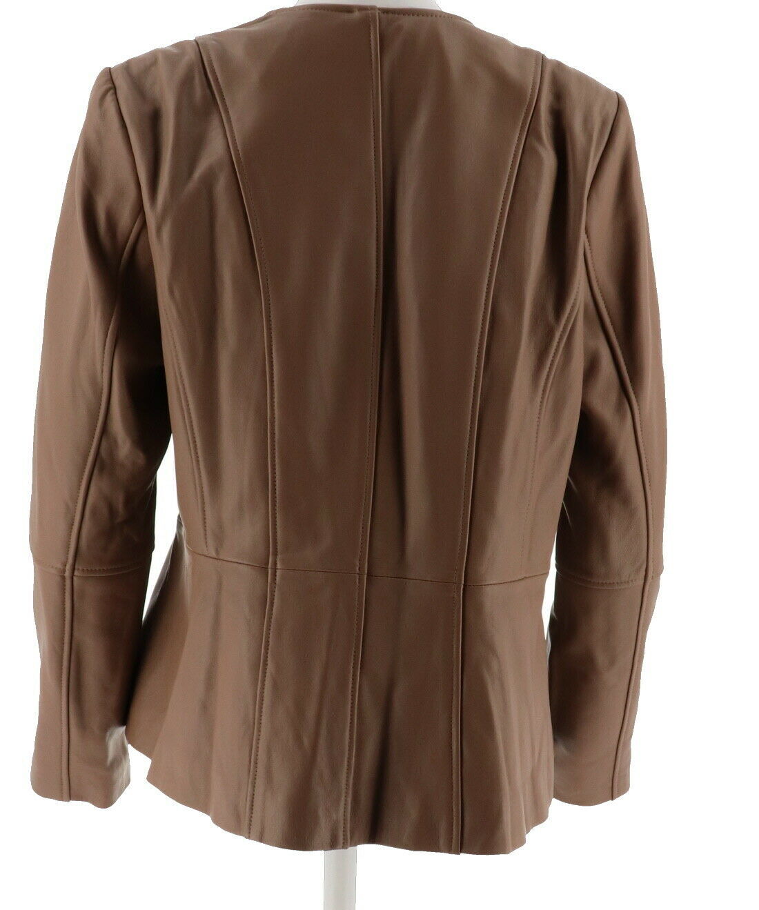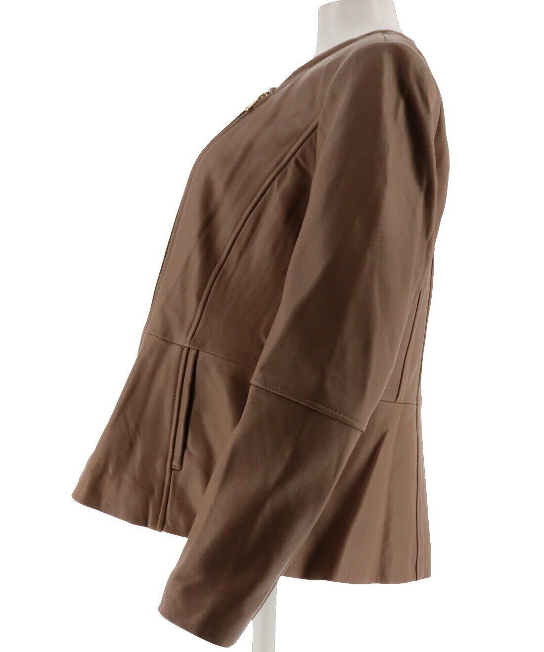 Mizrahi Lamb Leather Peplum Motorcycle Jacket Cappuccino