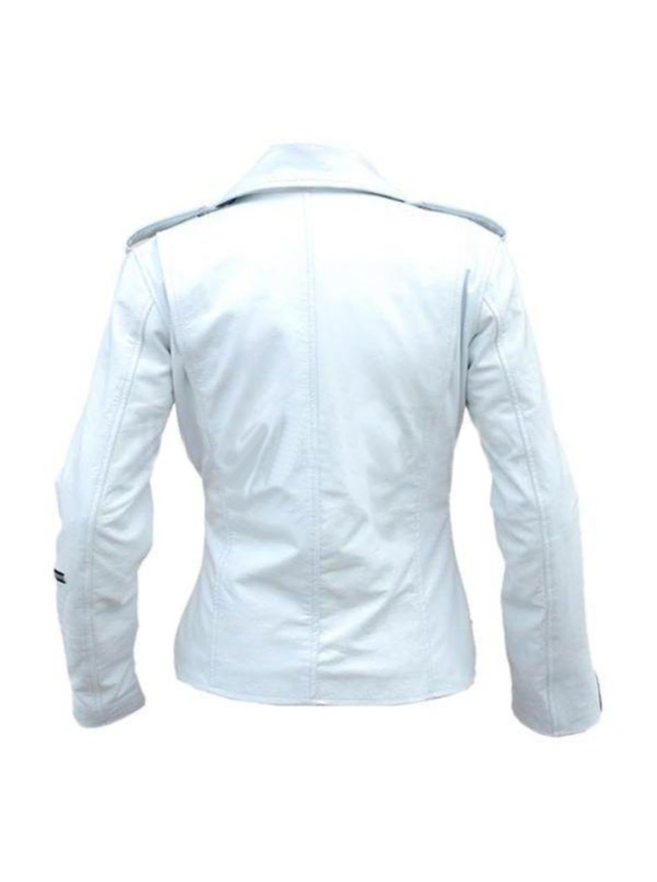 Plus Size Leather Jacket In Angel White Brando Style With Belt