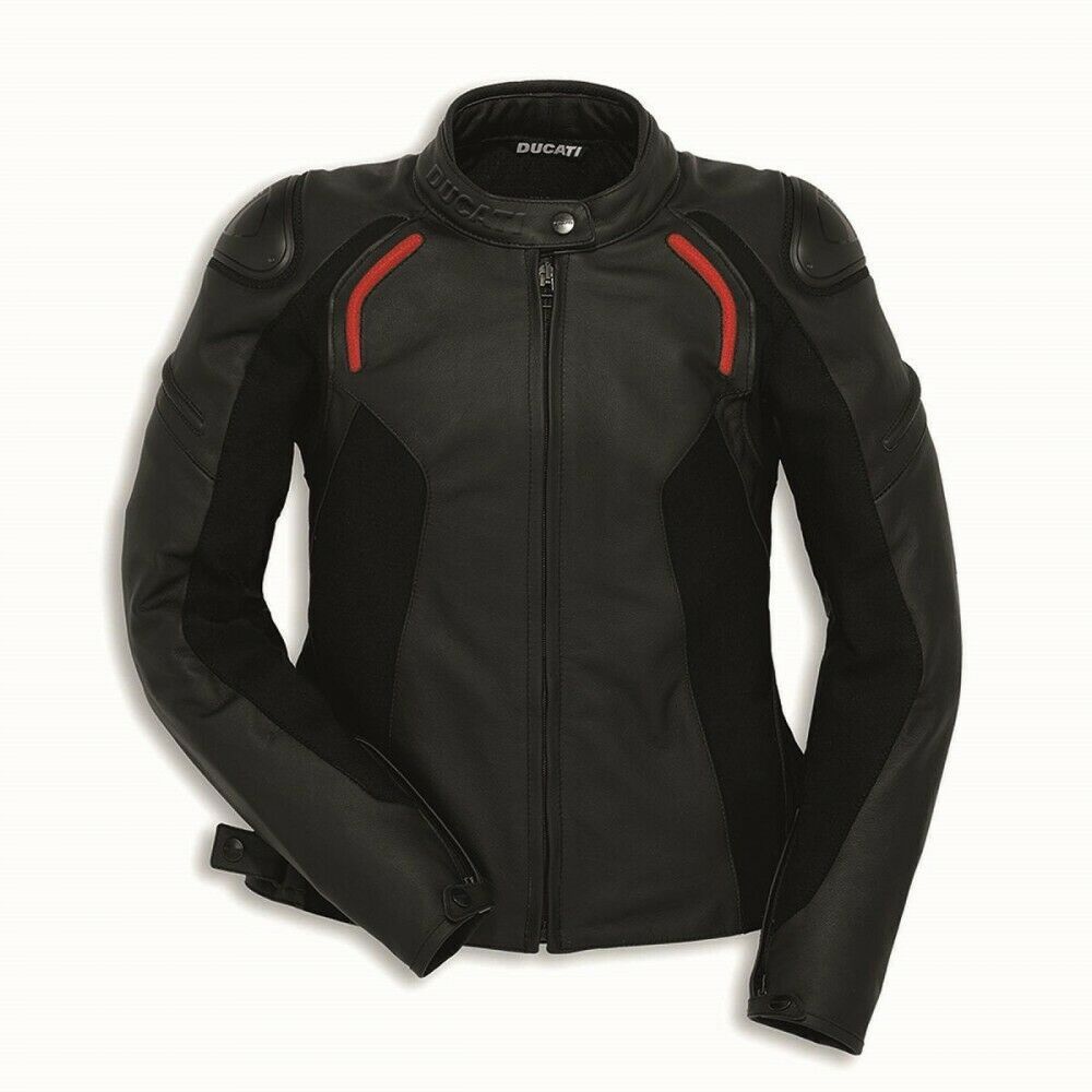 LADIES BLACK DUCATI MOTORBIKE RACING LEATHER JACKET CE APPROVED