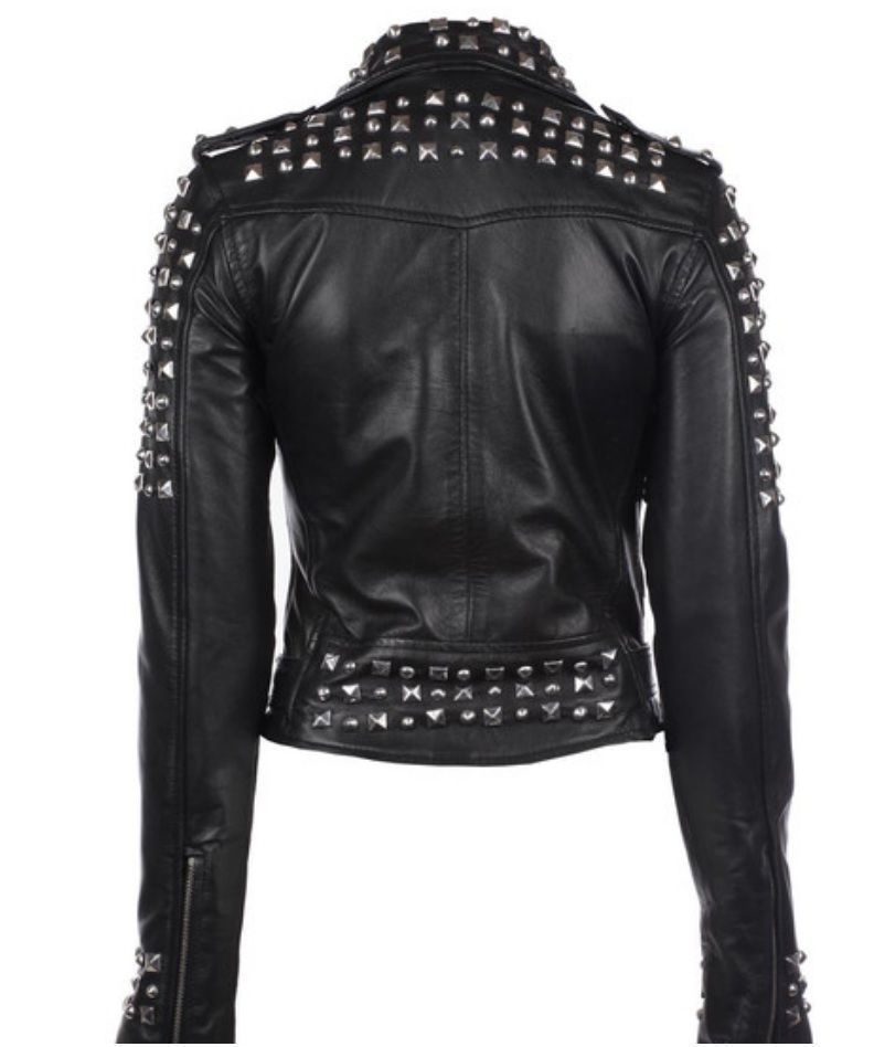 Women Black Punk Style Studded Leather Jacket Ladies Fashion Real Soft Jacket