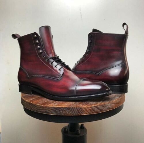 New Handmade Pure Burgundy Shaded Leather Ankle Boots for Men's