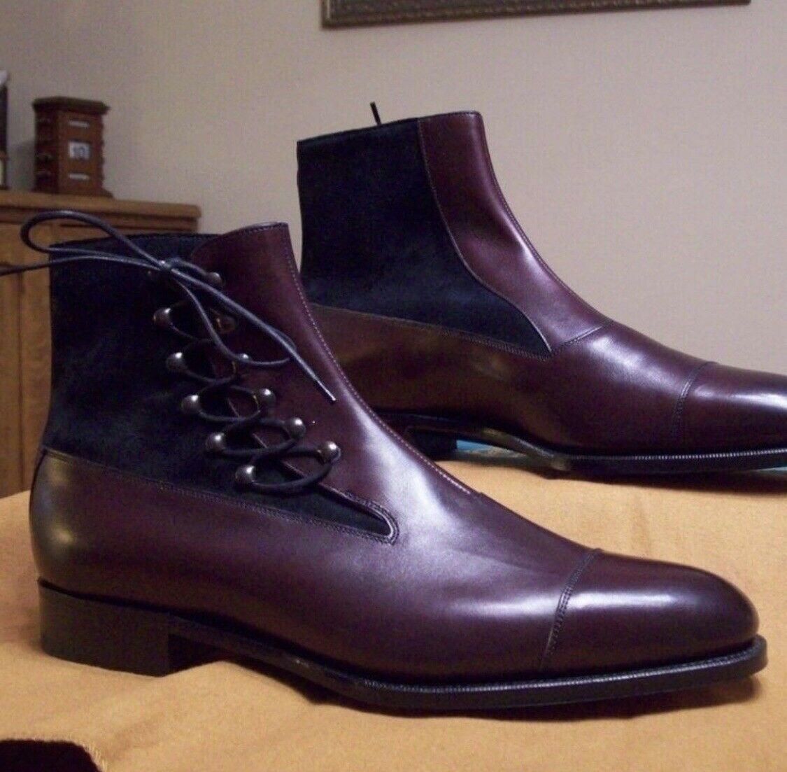 New Handmade Blue Suede & Purple Leather Ankle Boots for Men's