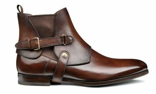 New Handmade Stylish Cover Chelsea Brown Pure Leather Ankle Boots for Men's