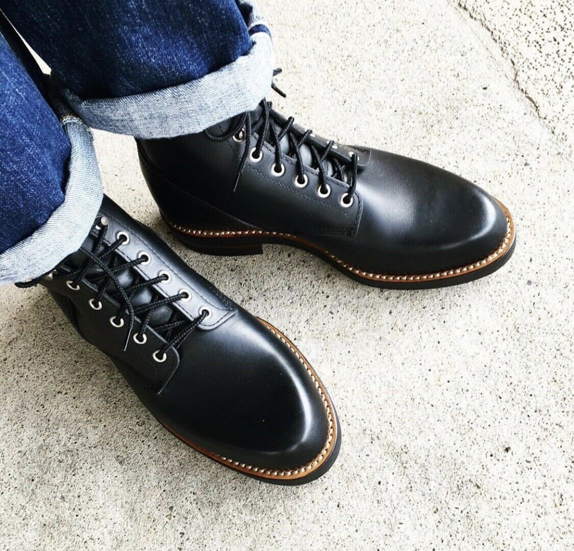 New Pure Handmade Black Genuine Leather Lace up Ankle Boots for Men's