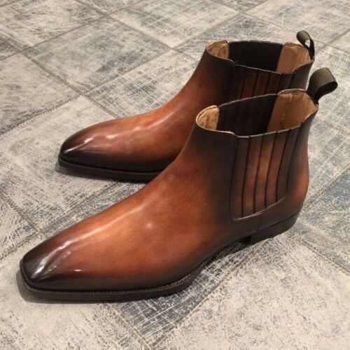 New Handmade Chelsea Tan Shaded Pure Leather Ankle Boots for Men's