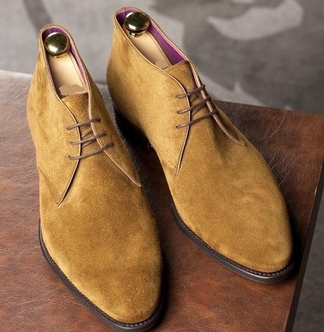 New Men's Handmade Suede Derby Tan Color Dress Formal Shoes, Men's Lace Up Shoes