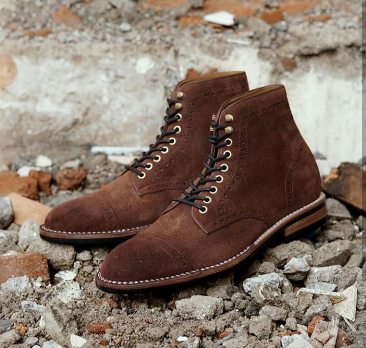 New Men’s Dark Brown Cap Toe Brogue Lace Up Ankle High Suede, Men Boot