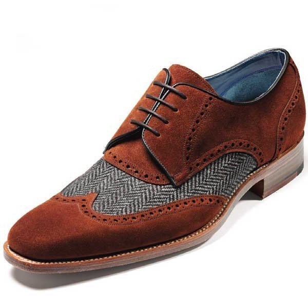 Oxford Two Tone Brown Color Suede Wing Tip Tweed Genuine Leather Lace Up Shoes