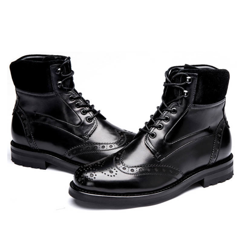 New Men's Lace Up High Ankle Black Wing Tip Brogue Toe Premium Leather Wear Boots