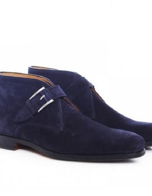 New Men's handmade Blue Stylish boot, Men Suede Monk Chukka Formal Blue boot