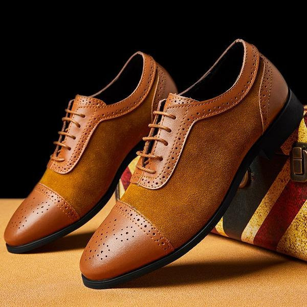 New Men's Brown Leather Brown suede Men oxford shoes Cap toe shoes