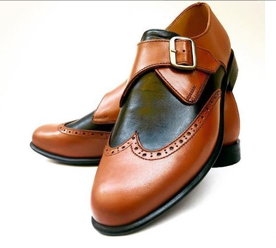 Handmade Men Wing Tip Brogue Shoes, Monk Strap Shoes, Real Leather Shoes