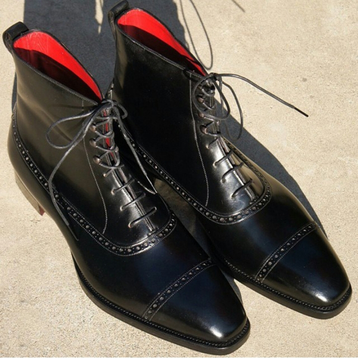 Handmade Men Brogue, Square Toe, Lace up High Ankle Boots, Leather Boots