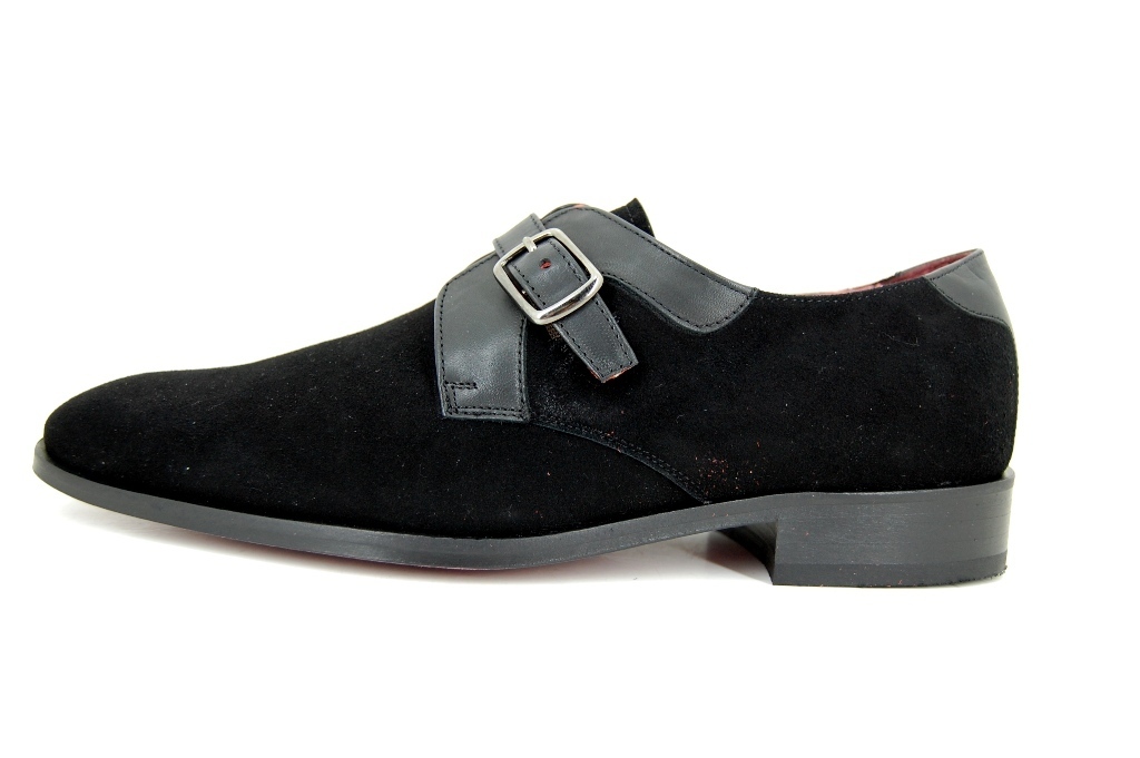 Handmade Men Monk Strap, Square Toe Office Shoes, Real Suede Dress Shoes