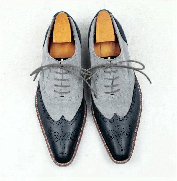 Handmade Men Wing Tip Brogue Lace Up Dress Shoes, Real Leather,Suede Shoes