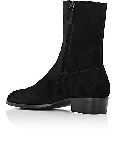 New Handmade Men Black Zipper Closure Suede Boots, Real Suede Long Boots For Men's