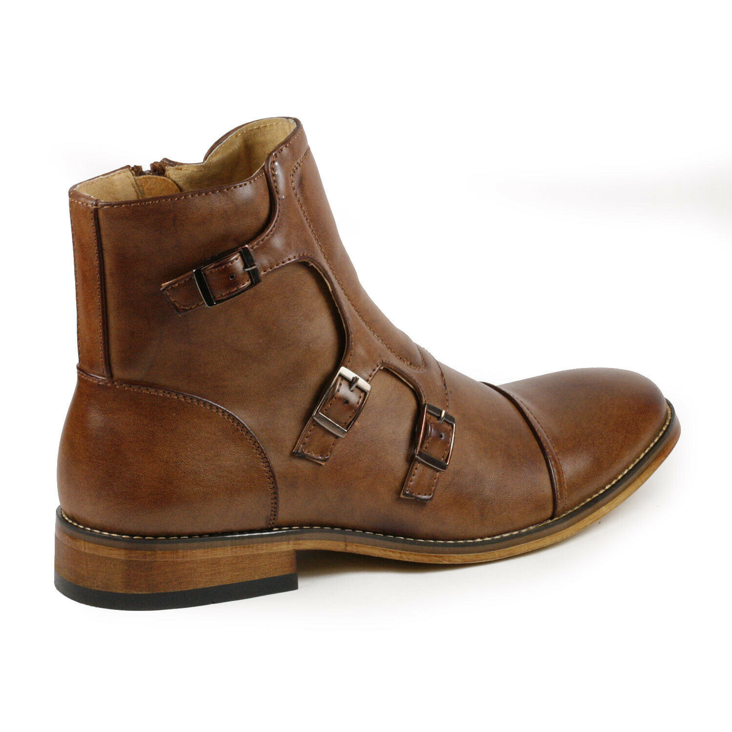 Handmade men triple monk strap cap toe dress boots, real leather high ankle office boots for mens