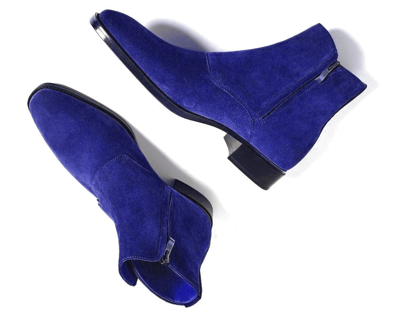 New Blue High Ankle Suede Leather Monk Triple Buckle Straps Men Wear Boots