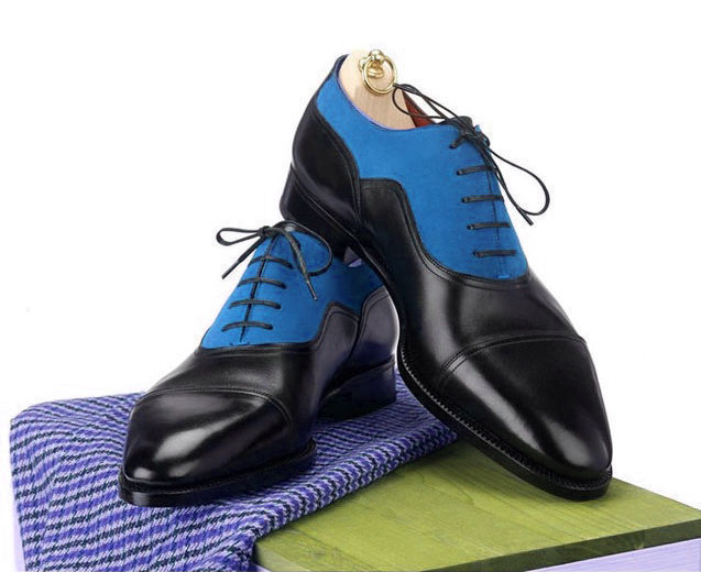 New Men's handmade Blue Black Oxford Pointed Toe Party Wear Leather Men Shoes