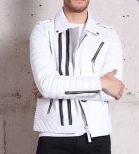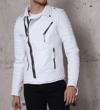 New Men fashion leather jacket,Men genuine leather white biker jacket,Men jacket
