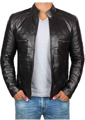 New Men's Leather Jacket Men-Cafe Racer Real Lambskin Leather Distressed Jacket