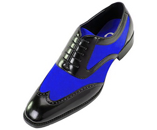 Two Tone Oxford Blue Suede Black Derby Luxury Handmade Men's Leather Dress Shoes