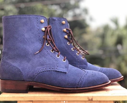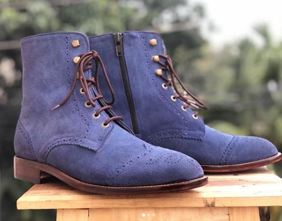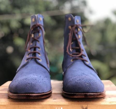 Handmade Men's Brogue Lace Up Suede High Ankle Cap Toe Dress Boots