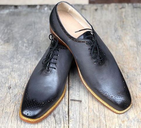 Handmade Men's Brogue Lace up Cap Toe Dress Shoes, Real Leather Shoes