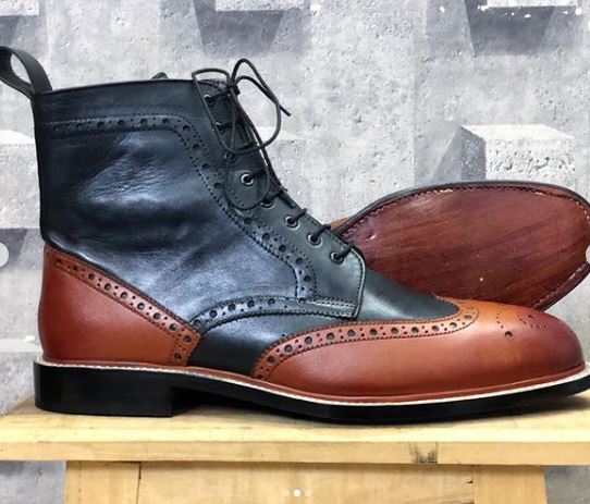 Handmade Men's Wing Tip Brogue Lace Up Cap Toe Leather High Ankle Men Boot