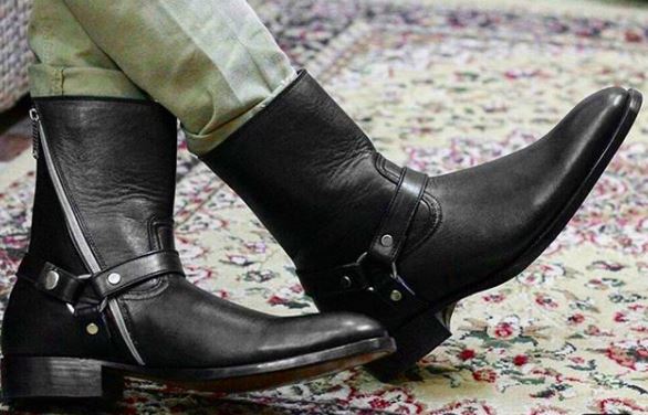 Handmade Men's Side Zipper Buckle Strap Leather High Ankle Dress Boots