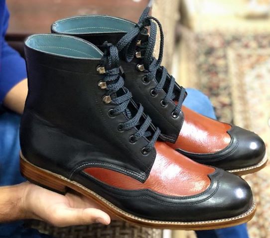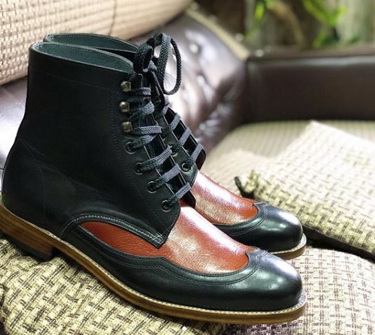 Handmade Men Wing Tip Lace Up Leather High Ankle Dress Boots, Leather Boots