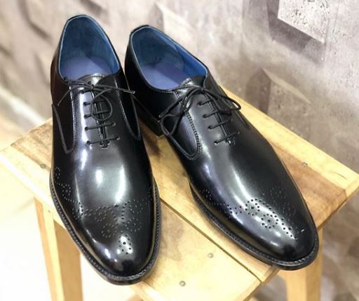 New Handmade Men's Brogue Lace Up Cap Toe Black Dress Shoes, Leather Shoes
