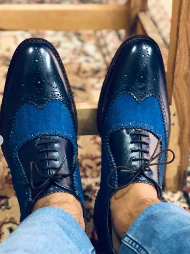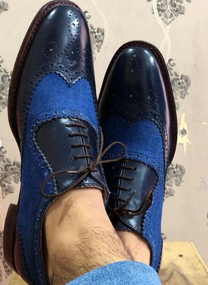 Handmade Men's Wing Tip Brogue Lace Up Cap Toe Leather Suede Dress Shoes
