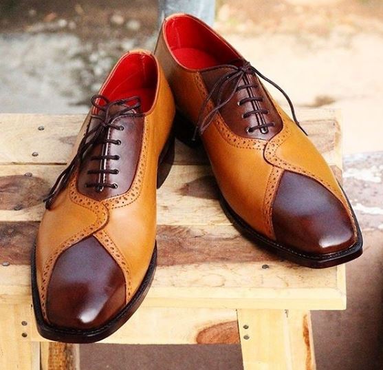 Handmade Men's Brogue Lace up Two Tone Dress Shoes, Real Leather Shoes