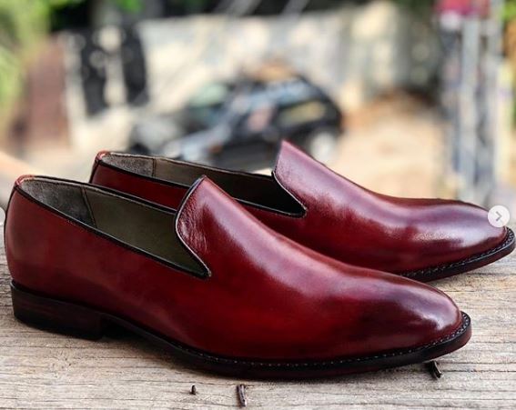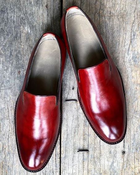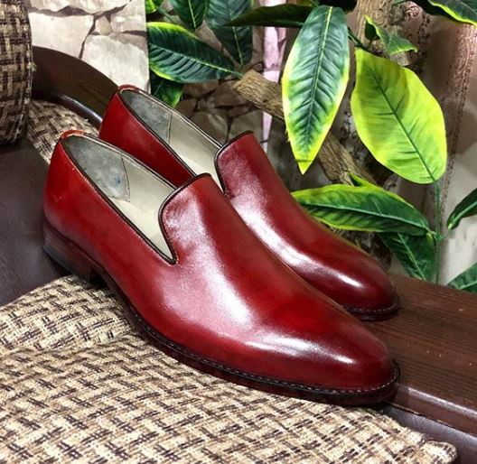 Men's Moccasin Maroon Cap Toe Leather Dress Shoes, Genuine Leather Shoes