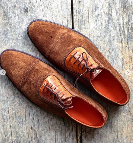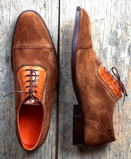 Men Brogue Lace Up Cap Toe Suede Dress Shoes, Real Suede Shoes for Men's