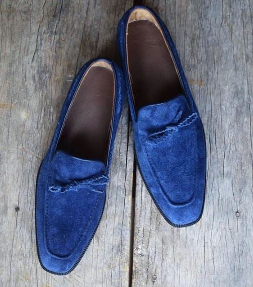 Handmade Men's Square Toe Slip On Dress Shoes, Genuine Suede Shoes