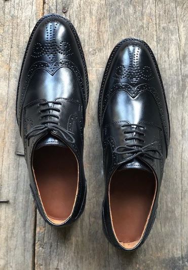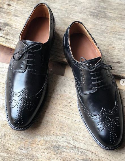 Handmade Mens Black Wing Tip Brogue Lace Up Dress Shoes, Genuine Leather