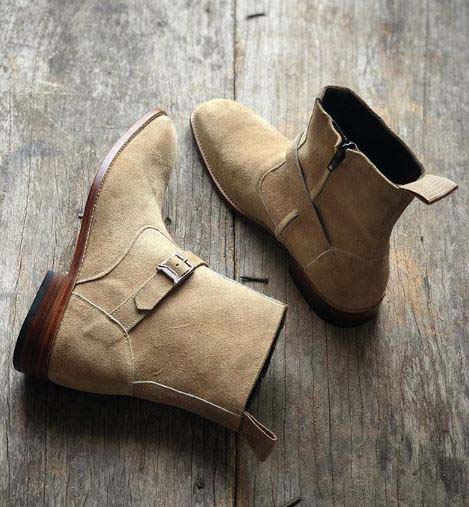 Handmade Men's Monk Strap Jodhpur Ankle Dress Boots, Genuine Suede Boots