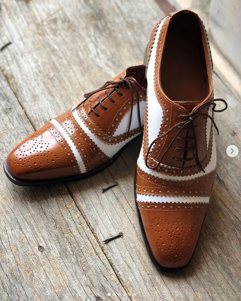 Handmade Men Two Tone Brogue Lace up Dress Shoes, Real Leather Office Shoes