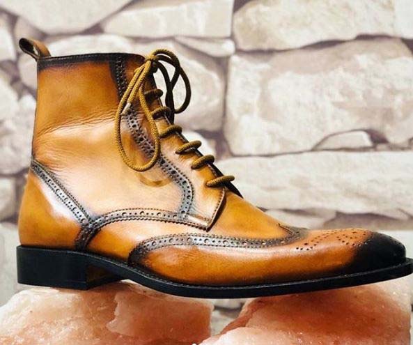Handmade Men's Wing Tip Brogue Lace Up Chukka Ankle Leather Dress Boots