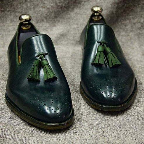Handmade Men's Brogue Tassels Moccasins Dress Shoes, Real Leather Shoes