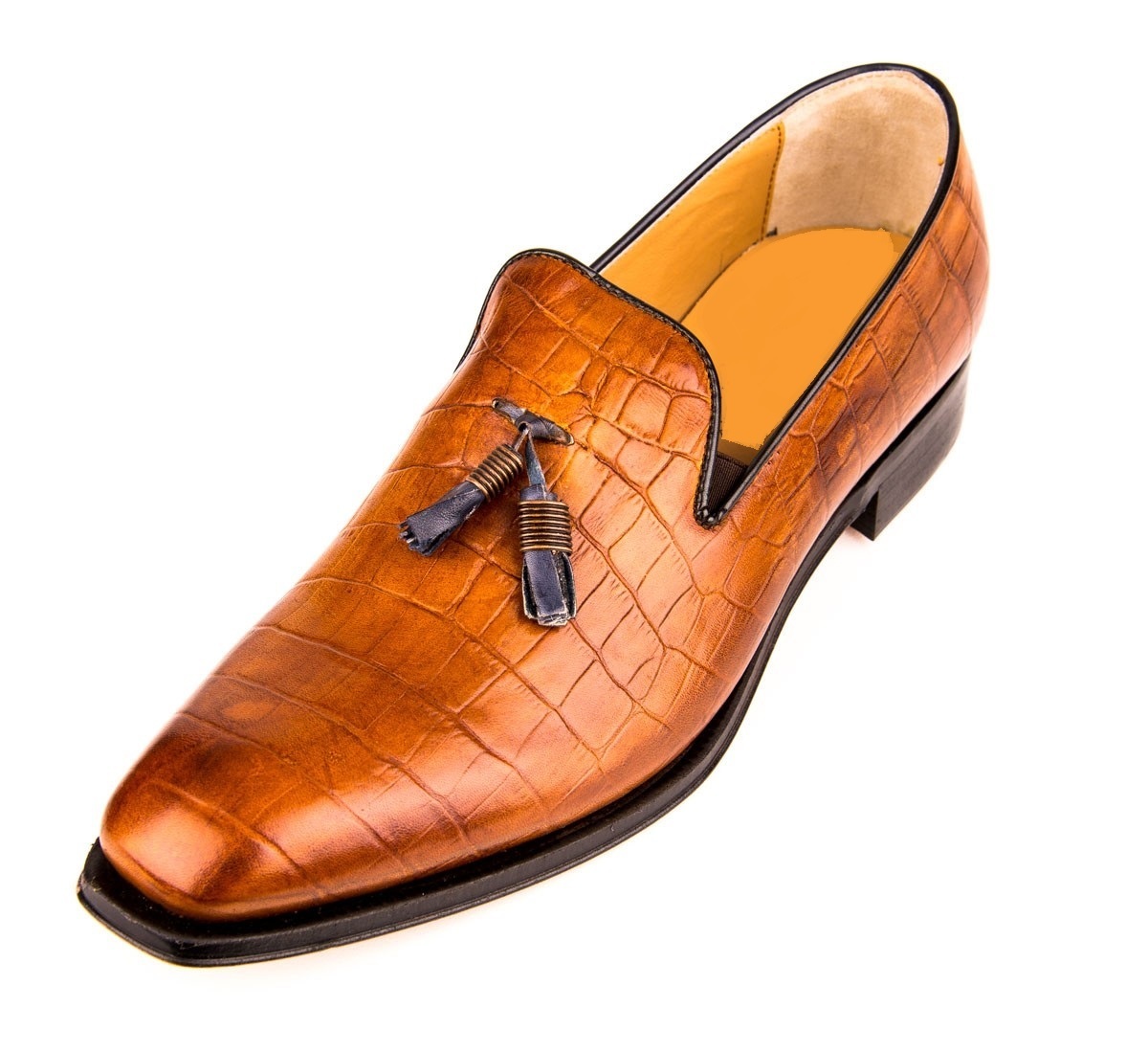 Handmade Men's Tan Moccasins Tassels Formal Crocodile Texture Leather Shoes
