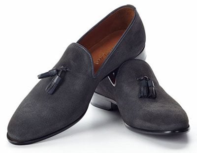Handmade Men's Gray Moccasins Tassels Formal Dress Shoes, Real Suede Shoes