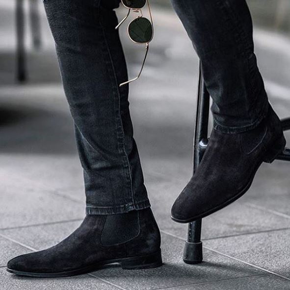 Handmade men ash black Chelsea round toe dress boots, real suede boots