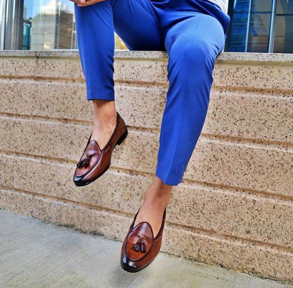 Handmade Men's Brown Tassels Round Toe Loafer Dress Shoes, Real Leather Shoes