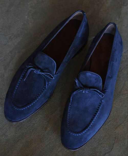 Handmade Men Blue Round Toe Tassels Moccasin Dress Business Suede Shoes