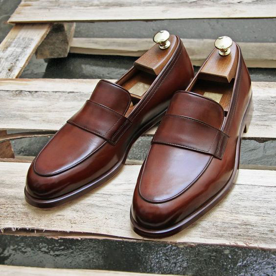 Handmade Men's Dark Brown Moccasin Business Shoes, Real Leather Office Shoe
