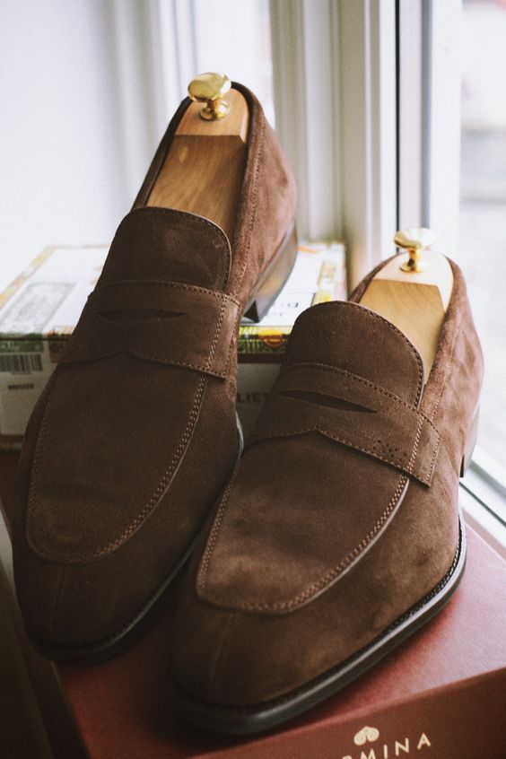 Handmade Men Brown Moccasin Business Shoes, Real Suede Office Dress Shoes
